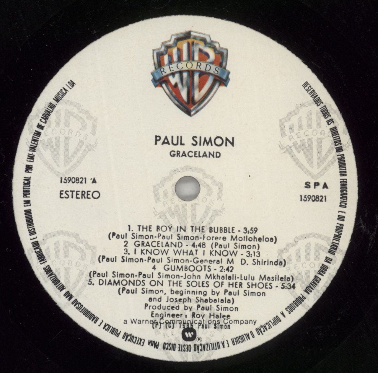 PAUL SIMON Graceland (Classic 1986 Portuguese 11-track LP, with a guest appearance from Los Lobos, housed in the original embossed & glossy picture sleeve complete with the lyric inner. The sleeve & vinyl remain in Excellent condition with just light signs of wear or play WX52)