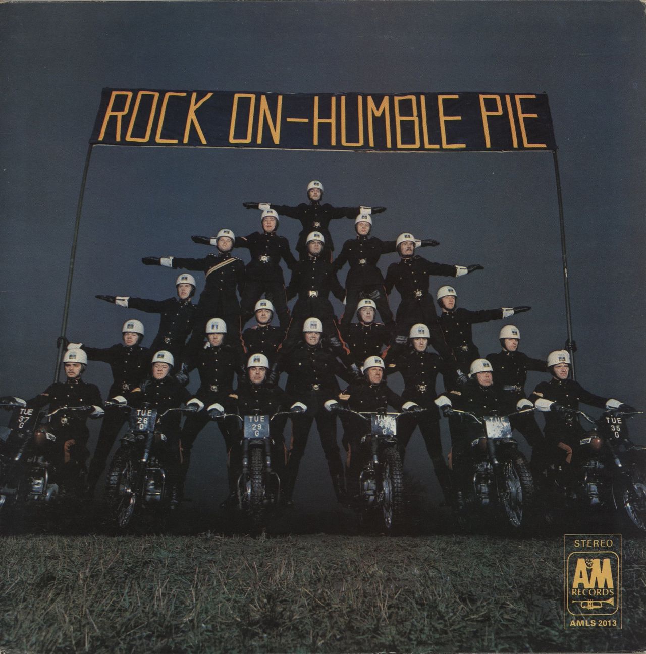 HUMBLE PIE Rock On (Rare 1971 UK 10-track stereo LP on the tan A&M label, led by Steve Marriott & Peter Frampton & including the classic, Stone Cold Fever, with guest spots from Alexis Korner & The Soul Sisters (P.P. Arnold, Claudia Lennear &Doris Troy), matte gatefold picture sleeve. The sleeve shows light ringwear mainly to the back (graded VG) whilst the vinyl has just a few light cosmetic marks leaving it Excellent - a great play copy AMLS2013)