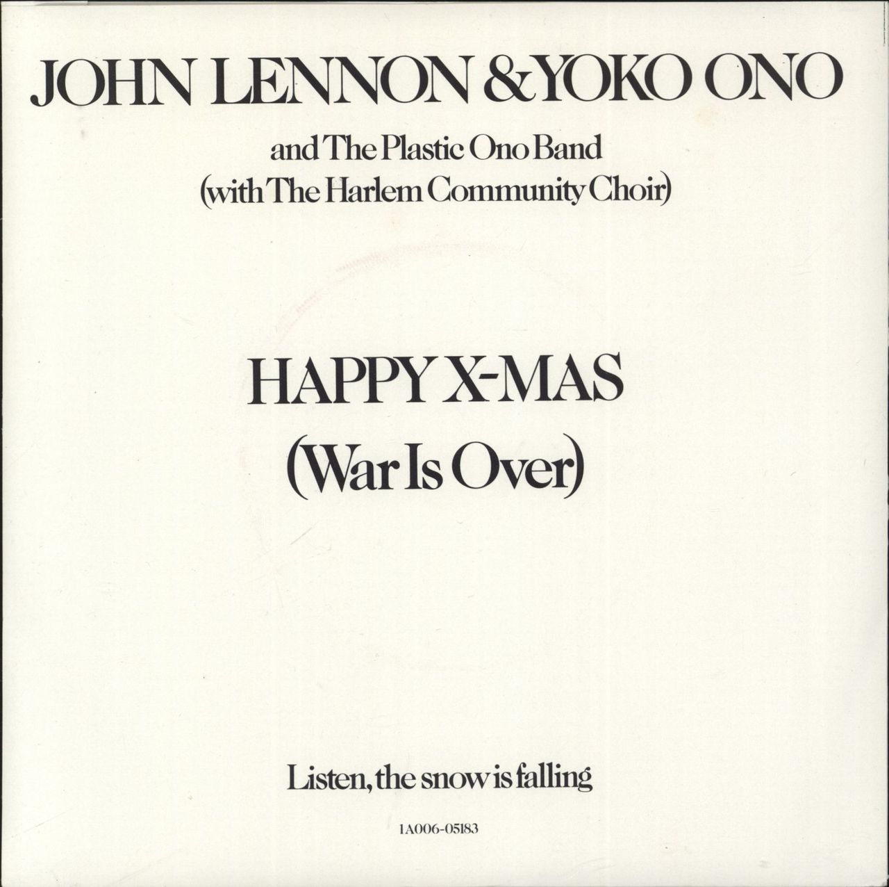 JOHN & YOKO / PLASTIC ONO BAND Happy Xmas [War Is Over] (1980 Dutch wide centre 7" vinyl single with the 'STEMRA' text printed at the bottom of the label, also includes Listen The Snow Is Falling, housed in the alternate white titled sleeve. The sleeve has little age wear and the vinyl remains in a near mint condition 1A006-05183)