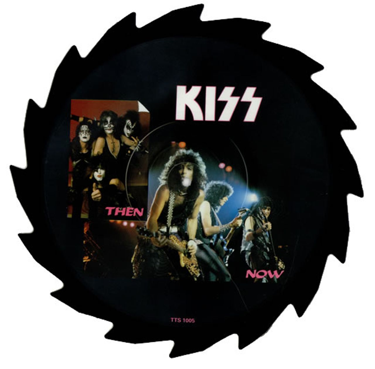 KISS Interview Picture Disc (1988 UK limited edition circular sawblade shaped Picture Disc LP, features 'then' and 'now' pictures on one side and the band in full-make picture on the other side TTS1005)