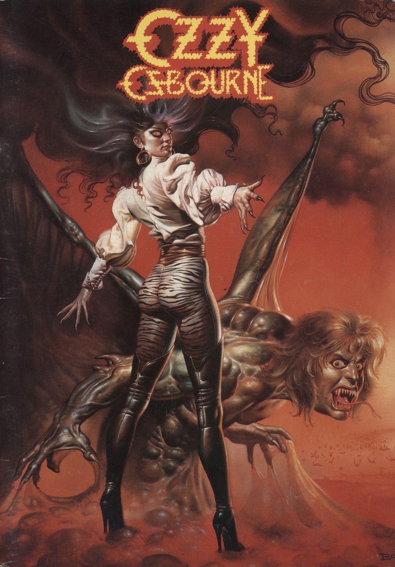 OZZY OSBOURNE World Tour 1986 (Official 1986 UK 24-page 13" x 9½" tour programme from 'The Ultimate Sin' album period, featuring superb photographs throughout with information on Ozzy and each of the band members, with discography and great album artwork cover. The cover has only light wear and remains in a really nice condition. This example also includes the original merchandise insert and ticket stub for the 26th February show at the Hammersmith Odeon in London)