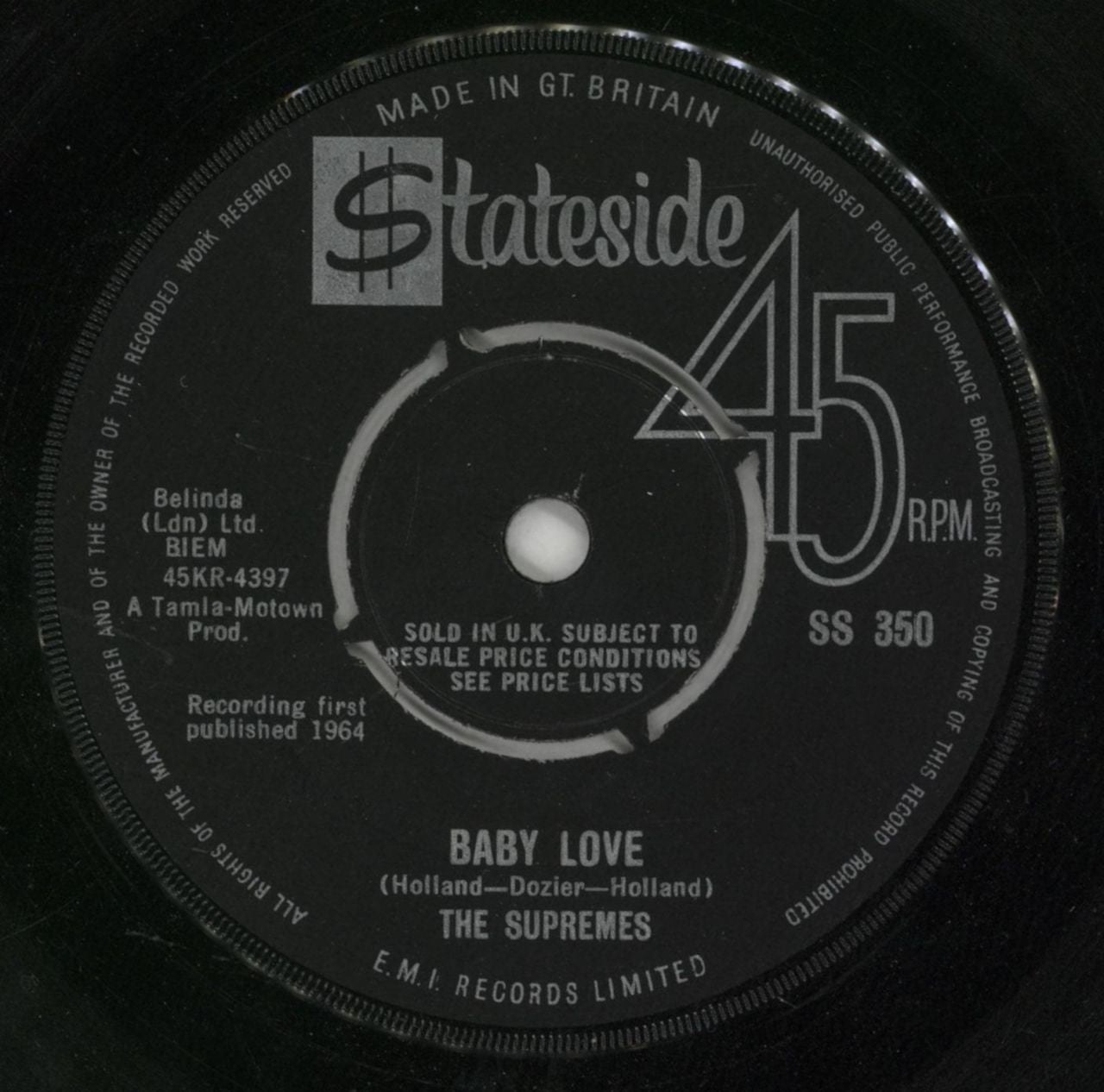 THE SUPREMES Baby Love (Classic 1964 UK 7" single, with four prong centre & 'Sold In UK' print. Also features the b-side 'Ask Any Girl', die-cut sleeve. The vinyl is Excellent with very little play SS350)