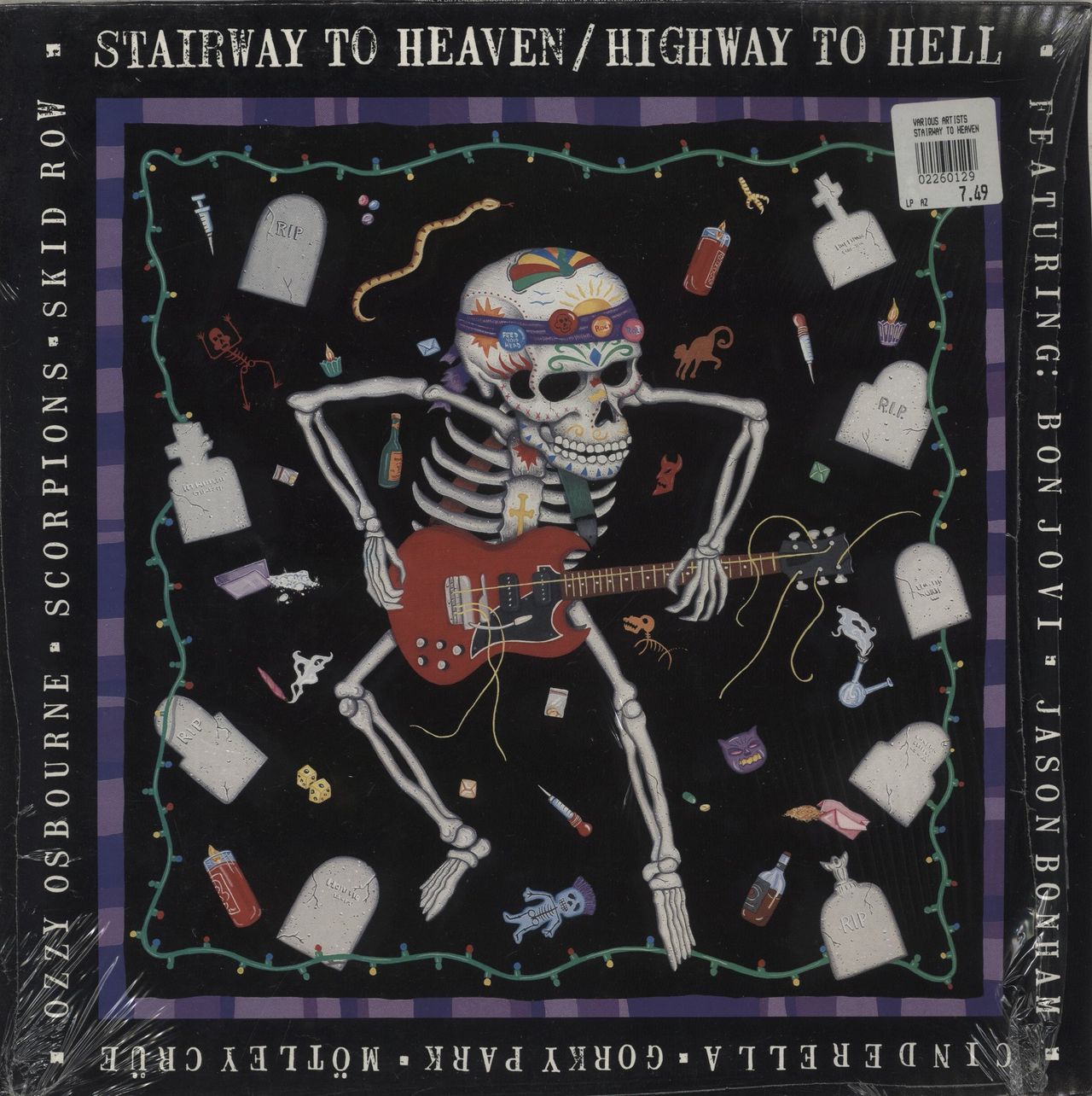 VARIOUS-ROCK & METAL Stairway To Heaven / Highway To Hell (1989 Dutch 11-track Make A Difference Foundation compilation LP featuring cover songs by Bon Jovi, Ozzy Osbourne, Gorky Park, Skid Row, Motley Crue and more, complete with illustratedcredits inner, picture sleeve. The sleeve retains its original open shrinkwrap and vintage price sticker and the vinyl remains in excellent condition with few signs of play)