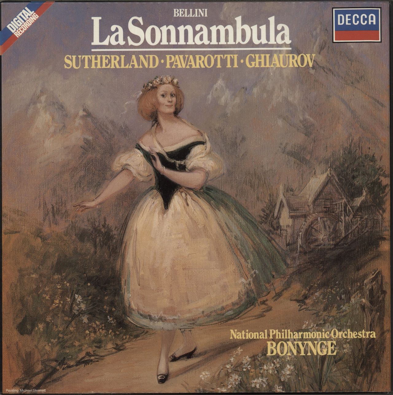 RICHARD BONYNGE conducts the NATIONAL PHILHARMONIC ORCHESTRA Bellini: La Sonnambula (1982 Dutch 7-track 3-LP vinyl set, with Joan S'utherland and Pavarotti, picture box with 36-page libretto booklet. The box shows minimal wear and the vinyl isNear Mint D230D3)