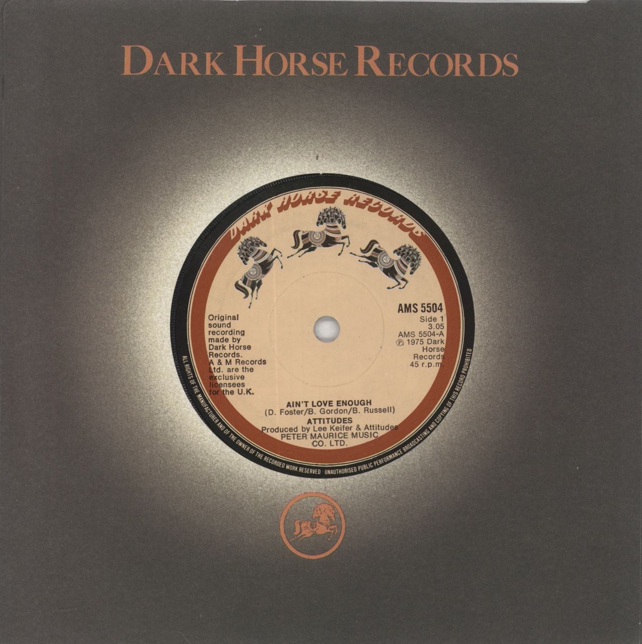 ATTITUDES Ain't Love Enough (1976 UK 7"vinyl single, also including The Whole World's Crazy, Dark Horse reproduction company die-cut paper sleeve AMS5504)