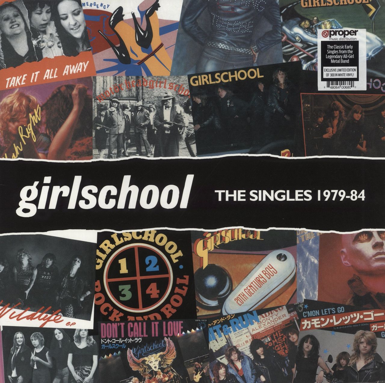 GIRLSCHOOL The Singles 1979-84 (2018 US limited edition 12-track LP pressed on White Vinyl, housed in agatefold picture sleeve details about the tracks inside and hype sticker from the shrink attached. The sleeve displays just a littlelight general wear and the vinyl remains in a 'near mint' condition)***Limited to only 300 copies***