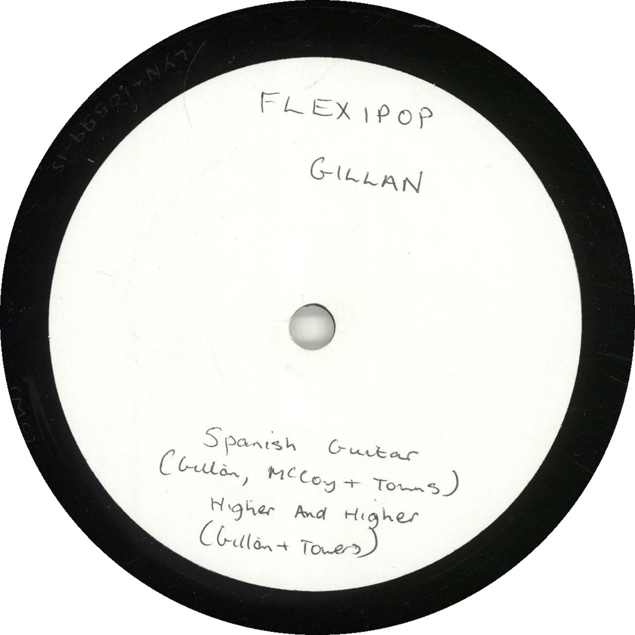 IAN GILLAN Higher And Higher (Rare 1981 UK white label test pressing vinyl 7" for the 2-track flexidisc originally issued with issue No. 13 of the Flexipop magazine, also including Spanish Guitar - plays the same tracks on both sides! With custom artist/title handwritten label LYN-10599)