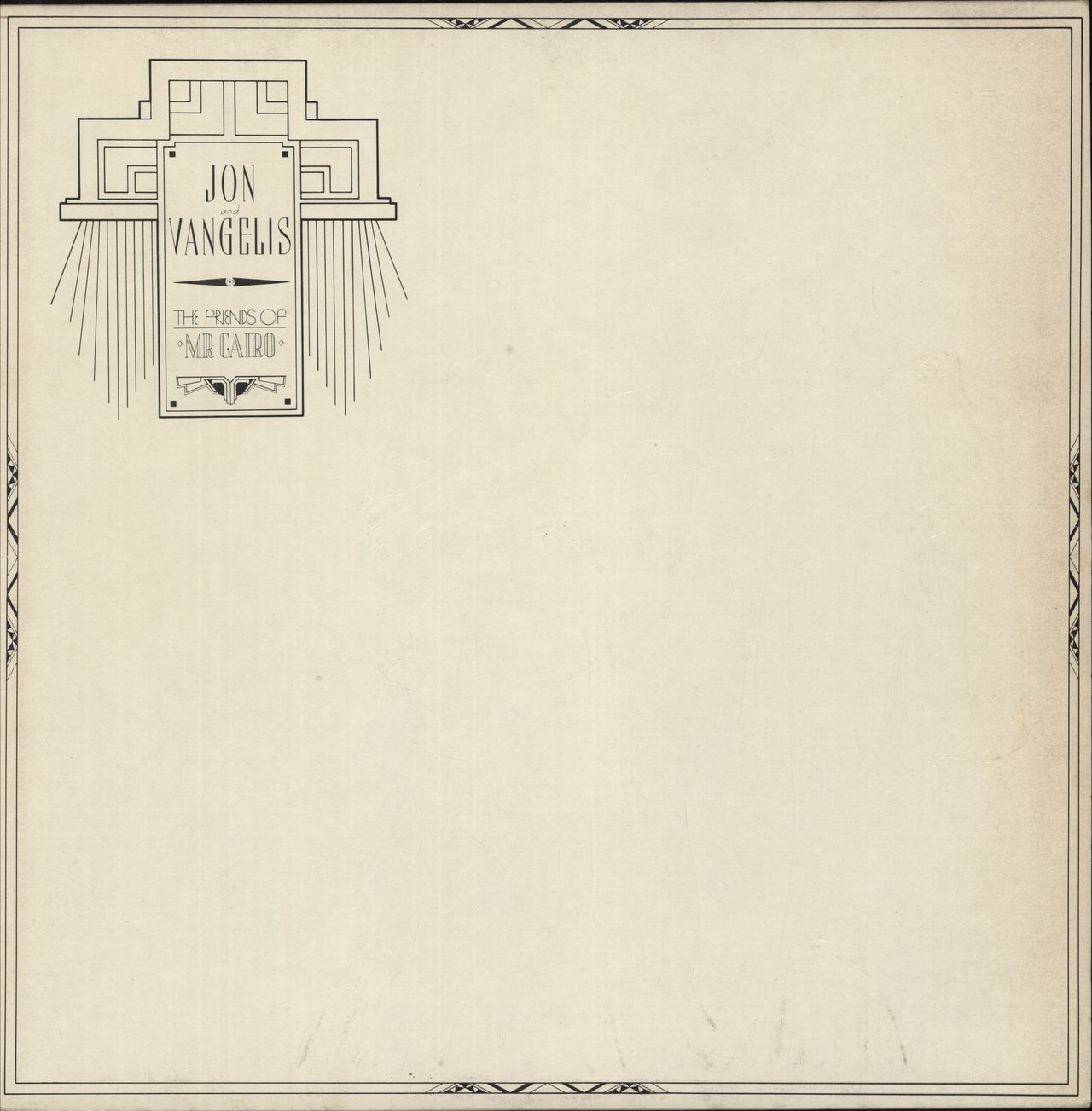 JON & VANGELIS The Friends Of Mr Cairo (Rare limited 1981 UK 6-track vinyl LP, housed in a unique promotional-only embossed picture sleeve with title top left and promo sticker on reverse, different from the commercial release, complete with lyric inner. The sleeve shows a medium residual sticker mark to reverse with only the lightest signs of shelfwear, whilst the vinyl again shows only the lightest signs of play POLD5039)