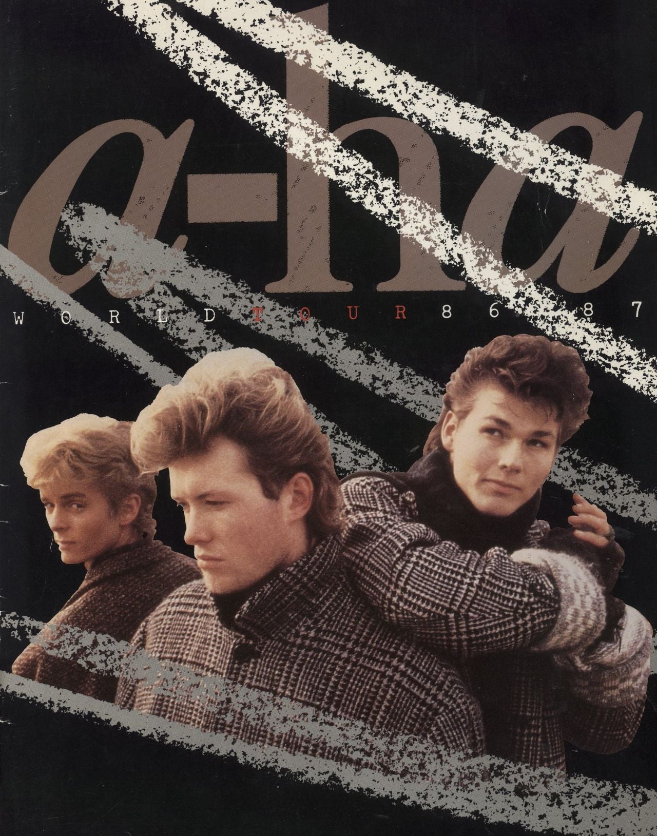 A-HA World Tour '86/87 (Official 1987 UK 28-page 11" x 14" tour programme, featuring biographical information and loads of great photographs of the band, glossy cover. This copy shows just a few light signs of age tot he cover with the inner pages remaining Excellent)