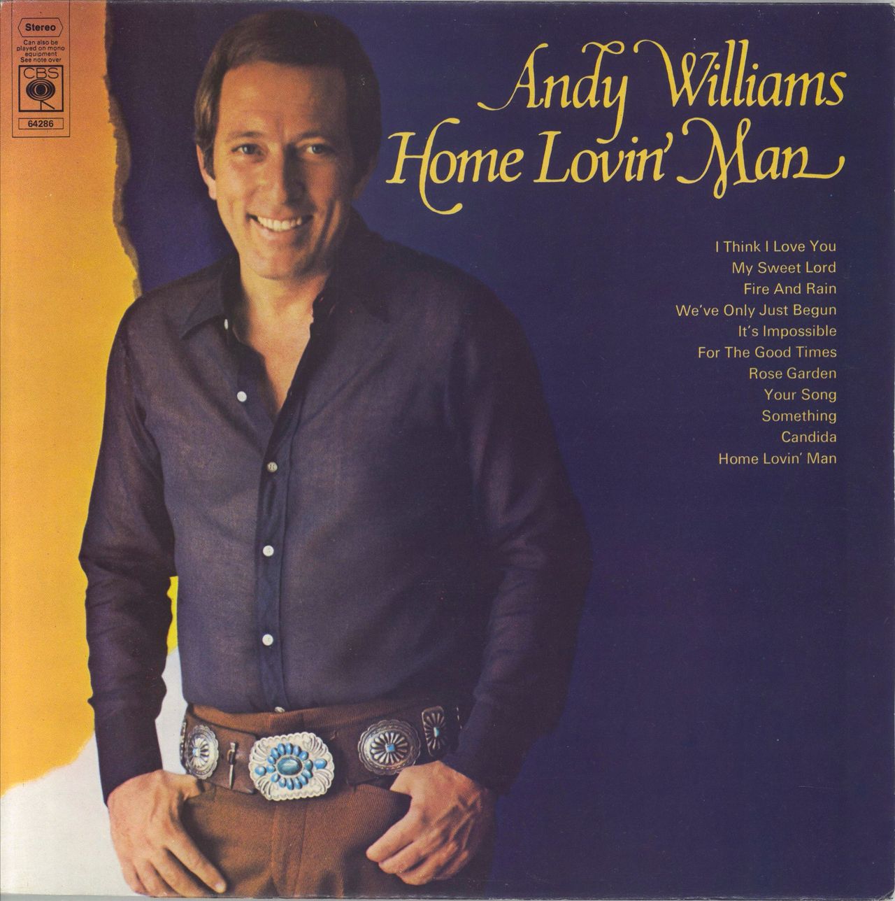 ANDY WILLIAMS Home Lovin' Man (1971 UK 11-track vinyl LP, including I Think I Love You, My Sweet Lord, Fire And Rain and more, picture sleeve. The picture sleeve and the vinyl presented in 'Near As New' condition)