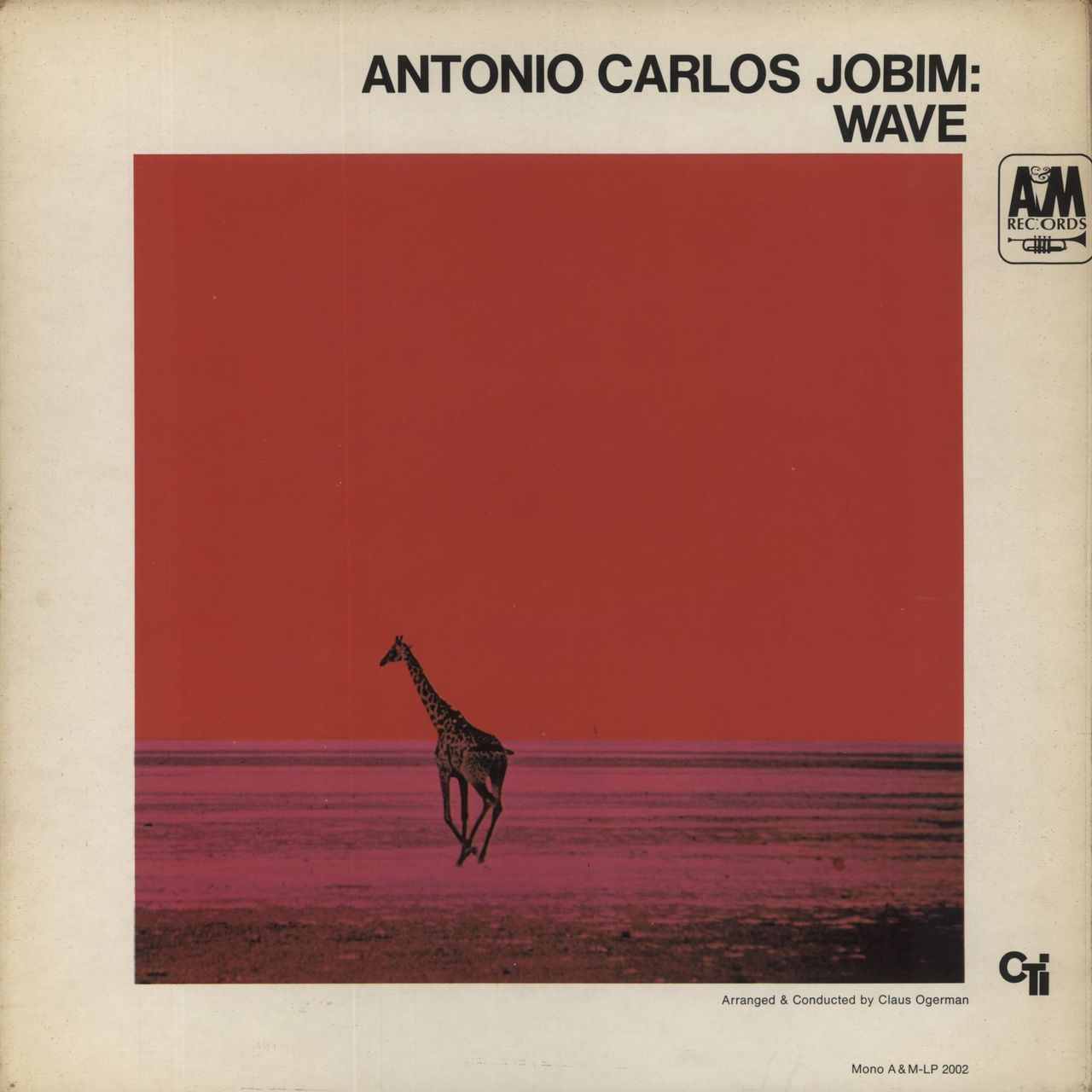 ANTONIO CARLOS JOBIM Wave (1967 UK tan A&M label 10-track stereo LP of quality Bossa vintage, front laminated flipback picture sleeve. The sleeve has a little storage wear including some discolouration around the edges and on the reverse, whilst the vinyl remains in excellent condition - a great play copy AMLS2002)