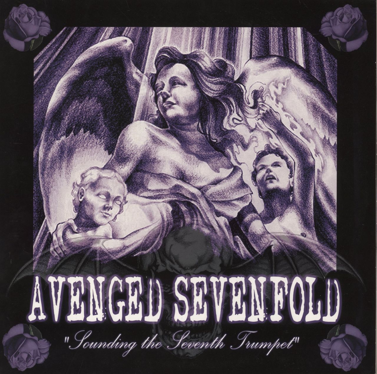 AVENGED SEVENFOLD Sounding The Seventh Trumpet (2016 US/EU issue 13-track Double album vinyl 2-LP set pressed in France and on Clear and Purple Splatter Vinyl, the group's debut studio album originally released in 2001, including the single Warmness on the Soul, housed in a gatefold picture sleeve with lyrics inside. The cover displays some light edge wear and a small crease in the top right corner, whilst the vinyl remains in a Near Mint condition)