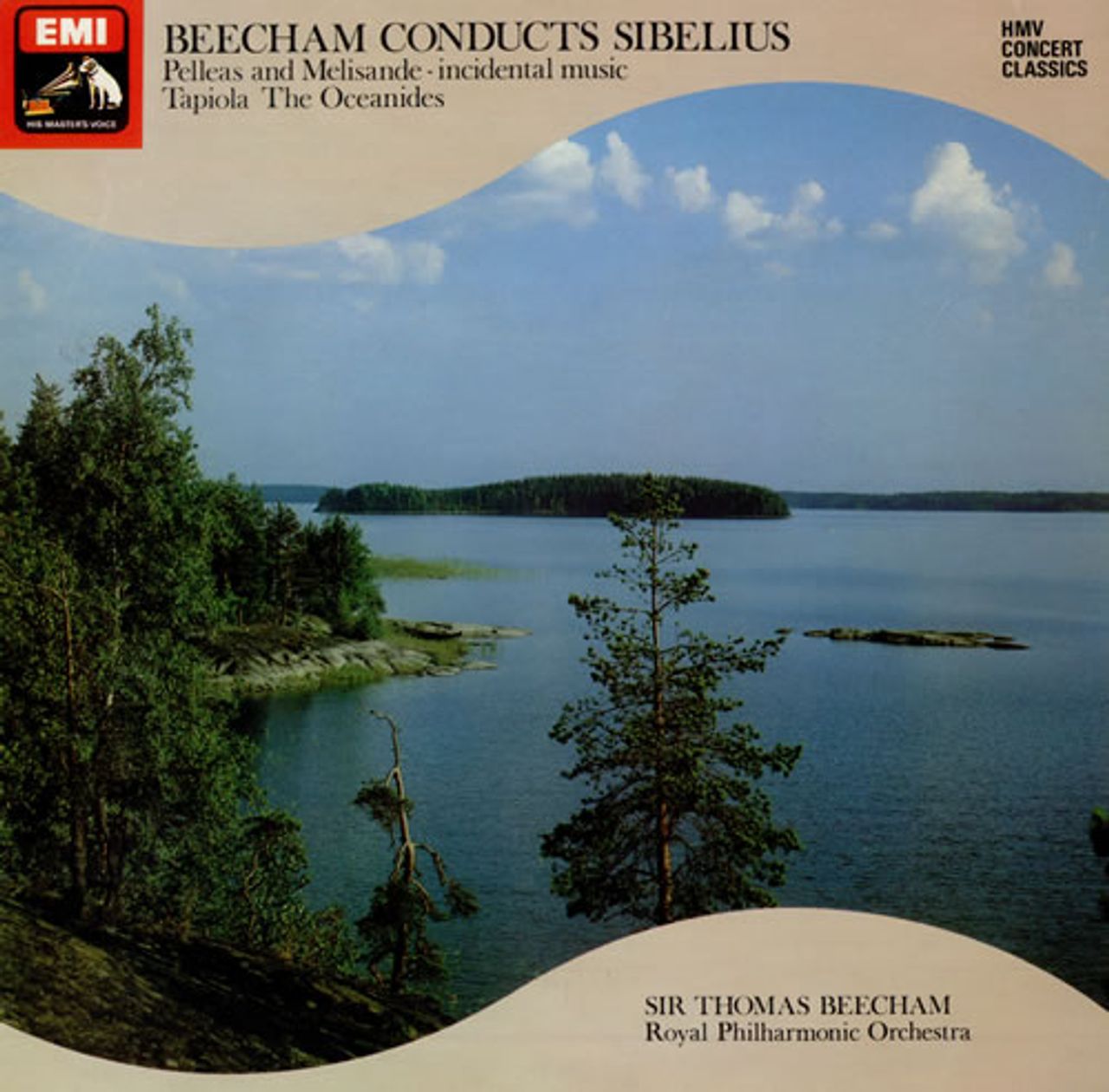 SIR THOMAS BEECHMAN conducting THE ROYAL PHILHARMONIC ORCHESTRA Pelleas And Melisande (1976 UK dark blue HMV label stereo LP in the Concert Classics series, including versions of the tone poem 'The Oceanides' and the symphonic Tapiolan, picture sleeve. The sleeve shows light wear and the vinyl has minimal sign of play SXLP30197)