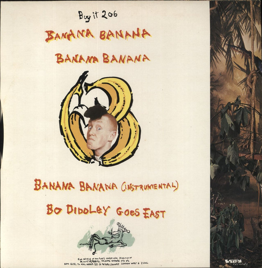 KING KURT Banana Banana (1984 UK 12" vinyl single, also featuring the instrumental version and Bo Diddley Goes East, glossy picture sleeve BUYIT206)