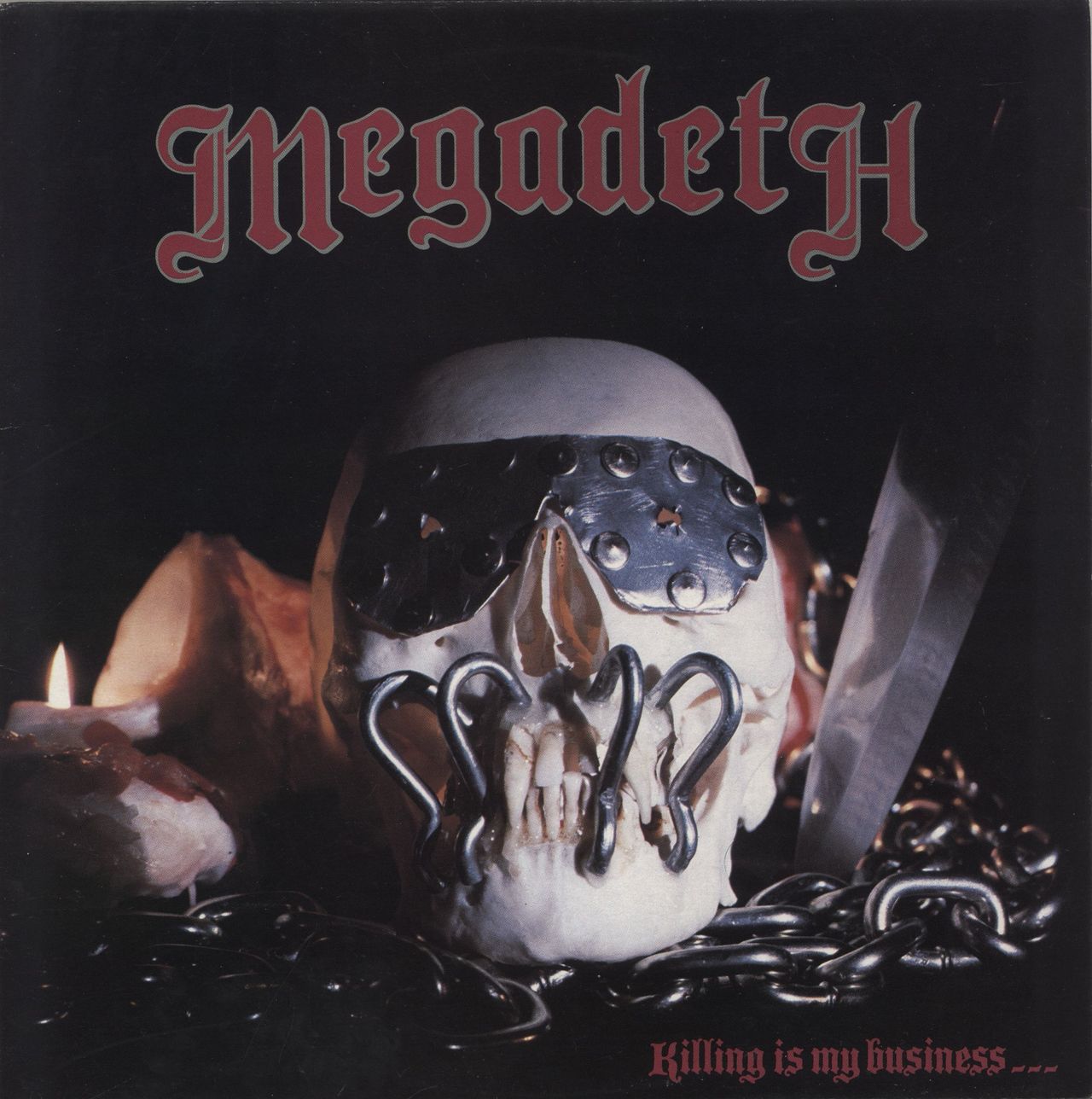 MEGADETH Killing Is My Business... (1985 UK 8-track vinyl LP on the 'Patrick Swayze' Music For Nations label with 'Made In England' clearly printed, housed in a non-barcoded glossy picture sleeve with lyric inner. The group's debut studio album, including their version of Nancy Sinatra's 'These Boots' with altered lyrics, the song sparked controversy in later years when the original author, Lee Hazlewood, deemed Mustaine's changes to be vile and offensive, demanding that it was removed from the album. Under threat of legal action, the song was removed from all pressings released after 1995. The sleeve displays some light general wear, the inner has has no spits, and the vinyl has minmal signs of play MFN46)