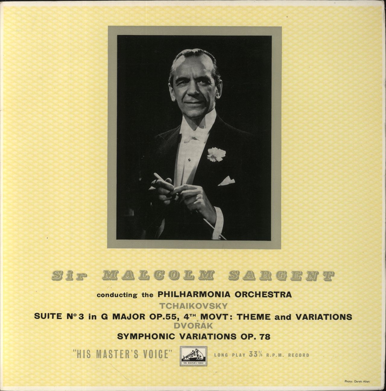 SIR MALCOLM SARGENT conducting the PHILHARMONIA ORCHESTRA Tchaikovsky: Suite No. 3 In G Major, Op. 55, 4th Movt: Theme And Variations; Dvorak: Symphonic Variations, Op. 78 (1956 UK 2-part mono vinyl LP on the 'deep groove' 'Nipper' HMV label,fully laminated picture sleeve with 'scalloped' flipbacks. The sleeve shows minimal wear and the vinyl is Excellent with little sign of play ALP1372)
