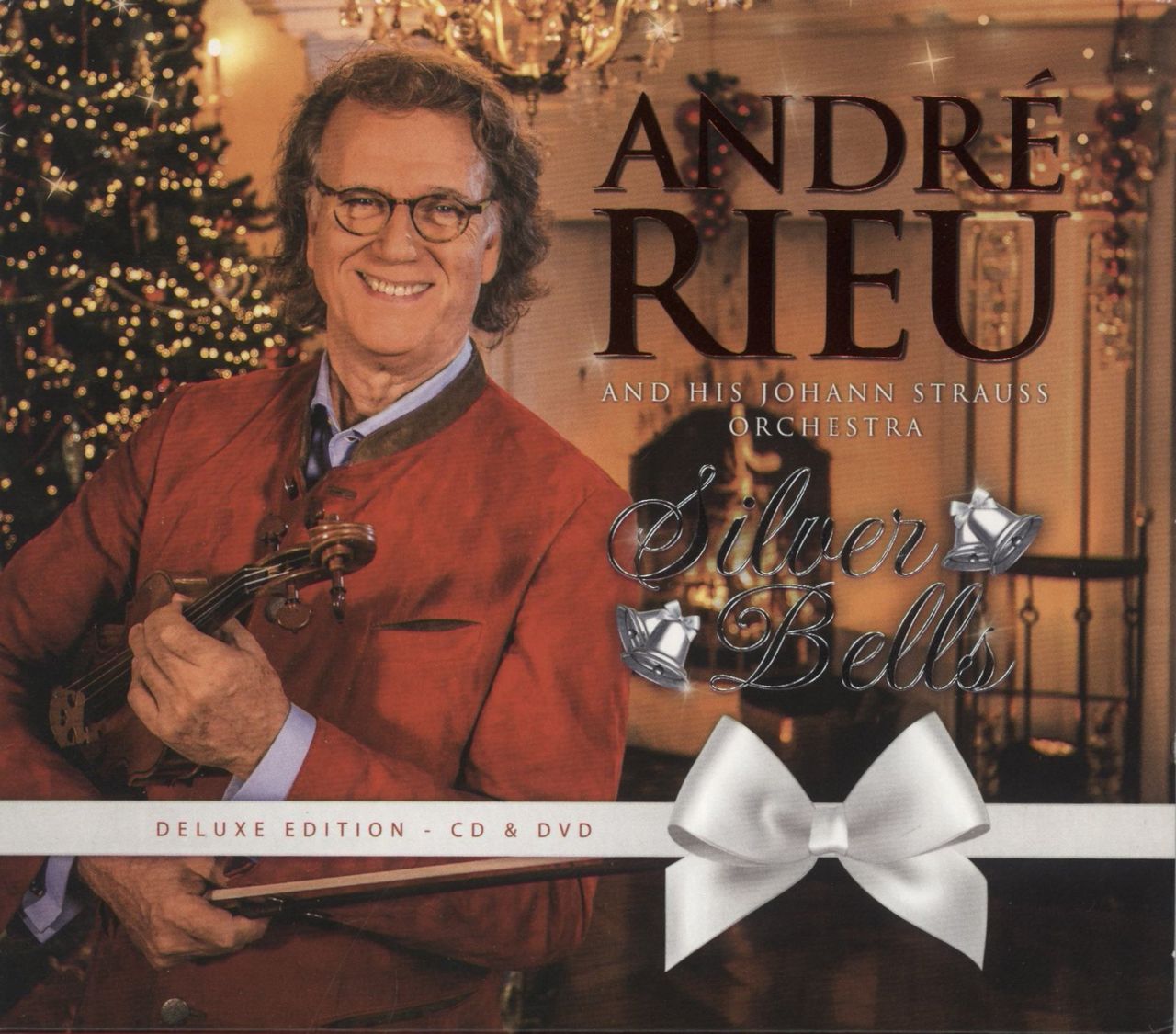 ANDRÉ RIEU Silver Bells (2022 German/EU Deluxe Edition 15-track CD/DVD set. Join André and his Johann Strauss Orchestra for a magical Christmas celebration featuring classics such as Santa Claus Is Comin' To Town, Jingle Bell Rock, Ave Maria,Hark! The Herald Angels Sing, It's Beginning To Look Like Christmas and the timeless title track Silver Bells. The bonus Region 5 NTSC DVD captures the stunning Christmas in Winter Wonderland concert, filmed amidst a spectacular festive setting at André's Winter Palace in Maastricht, featuring choir performances and enchanting seasonal highlights. Housed in a thin double jewel case with picture sleeve, and housed in a luxurious red foil-embossed card slipcase. A perfect holiday treat for fans and collectors alike!)