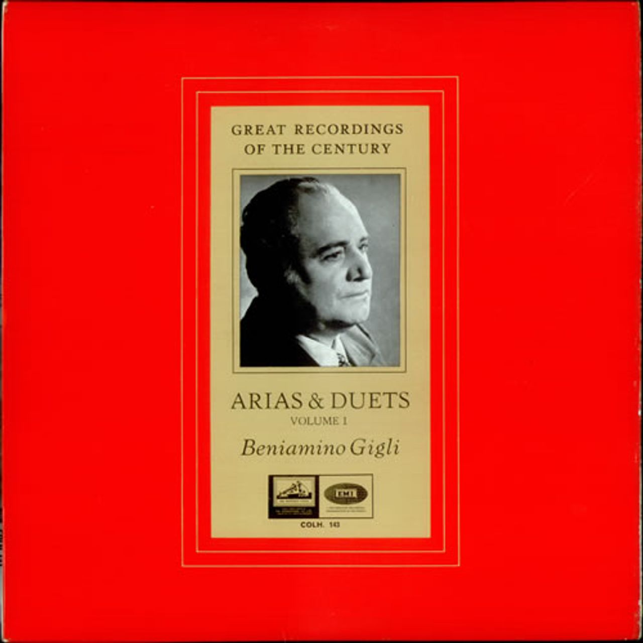 GIGLI Arias & Duets Volume 1 (1960's UK grey HMV Great Recordings of the Century label mono vinyl LP. A collection of recording made between 1937 and 1943 by arguably the finest tenor of the twentieth century. Laminated flipback picture sleeve. The sleeve shows minor edgewear and the vinyl looks Excellent with few signs of play COLH143)