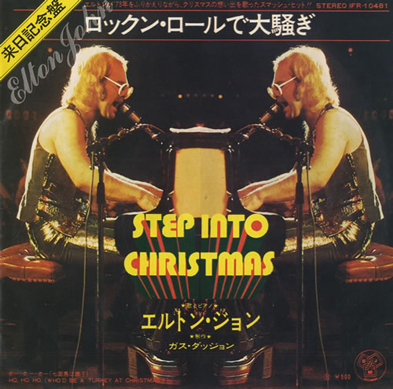 ELTON JOHN Step Into Christmas (1973 Japanese 7" vinyl single, also includes Ho, Ho, Ho - Who'd Be A Turkey At Christmas?, unique wrap-around picture insert with lyrics printed inside. The insert displays only light wear and the vinyl is NearMint IFR-10481)