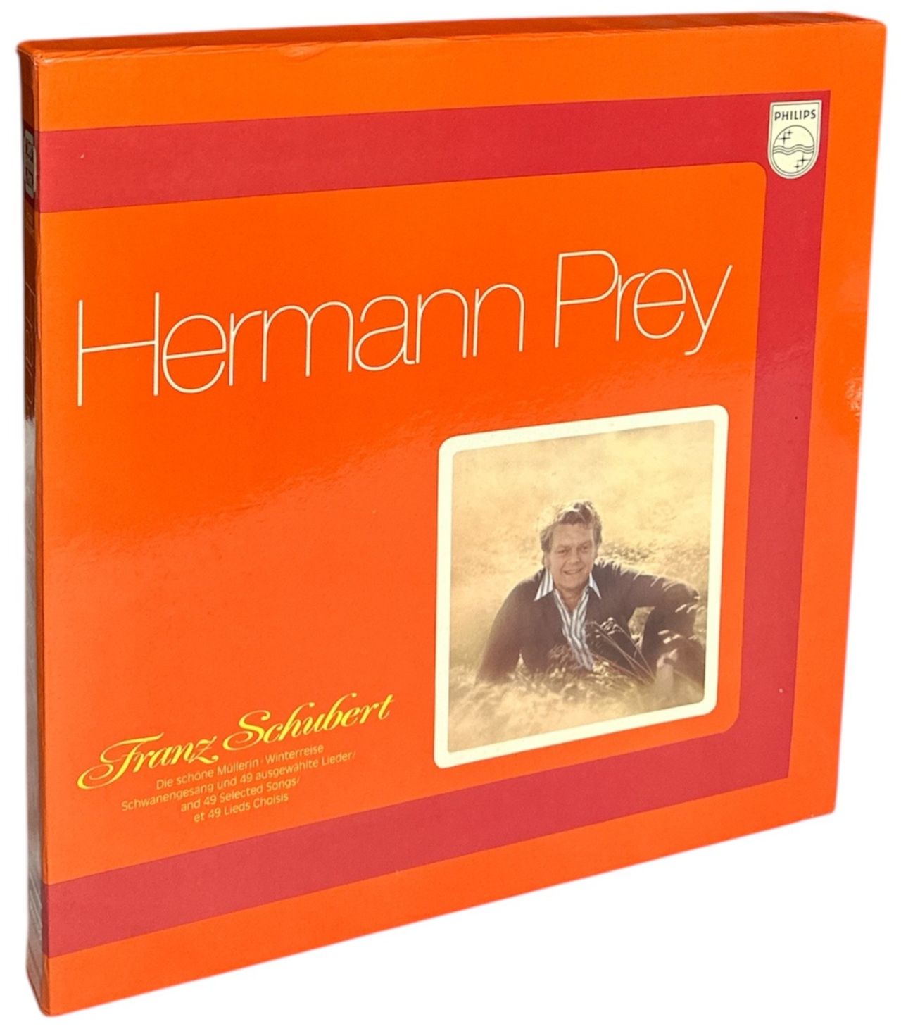 FRANZ SCHUBERT Die Schone Mullerin - Winterreise and 49 Selected Songs (1972 German 105-track 8-LP vinyl set; a vast collection of repertoire from Schubert, performed by Hermann Prey, box with picture wraparound and 40-page libretto/sleevenotes booklet. The box shows minimal wear and the vinyl is Near Mint)