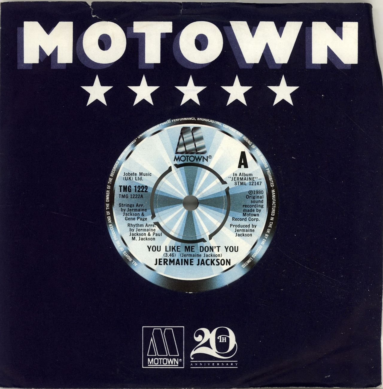 JERMAINE JACKSON You Like Me Don't You (1980 UK blue Motown label 2-track 7" vinyl single, also including Instrumental Version, die cut Motown 20th Anniversary paper sleeve. The original 4-prong centre is intact and the vinyl appears to be unplayed! TMG1222)
