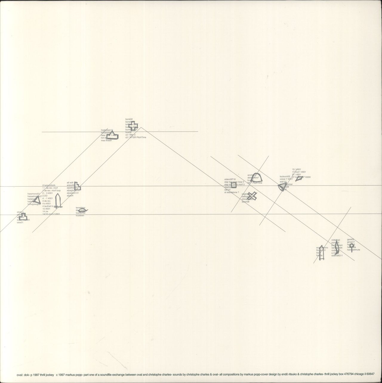 OVAL Dok (1998 US 9-track vinyl LP, part one of a soundfile exchange between Oval and Christophe Charles. Housed in a single pocket picture sleeve. Both sleeve and vinyl remain in Excellent condition THRILL046)
