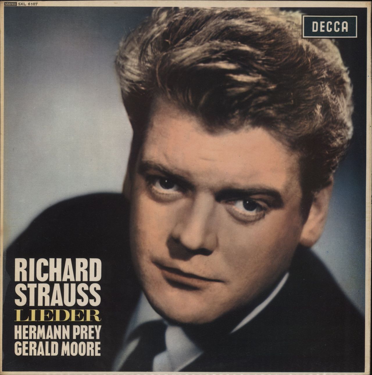 RICHARD STRAUSS Lieder (1964 UK 17-track stereo vinyl LP album, with Hermann Prey accompanied by Gerald Moore, front laminated picture sleeve with extensive sleevenotes. The sleeve shows minimalwear and the vinyl is Near Mint SXL6107)