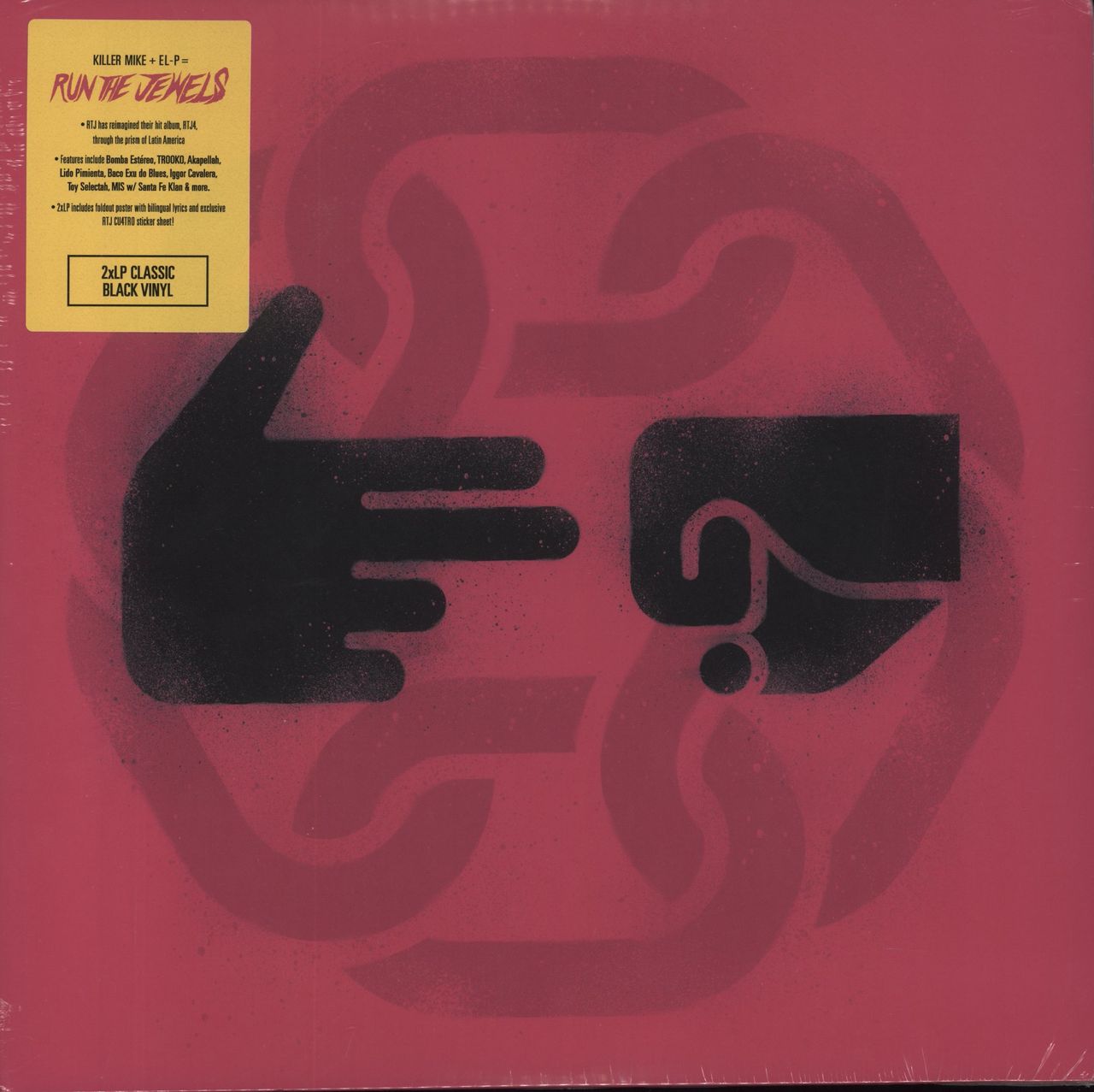 RUN THE JEWELS RTJ Cu4tro (2023 UK/EU 12-track double vinyl LP. A remix album of RTJ4 entirely made by Latin American artists, including Bomba Estéreo, TROOKO, Orestes Gomez and more! Gatefold picture sleeve with sticker sheet and fold-out poster. The top right corner of the sleeve shows a little creasing but remains Sealed from new within the hype-stickered shrink)