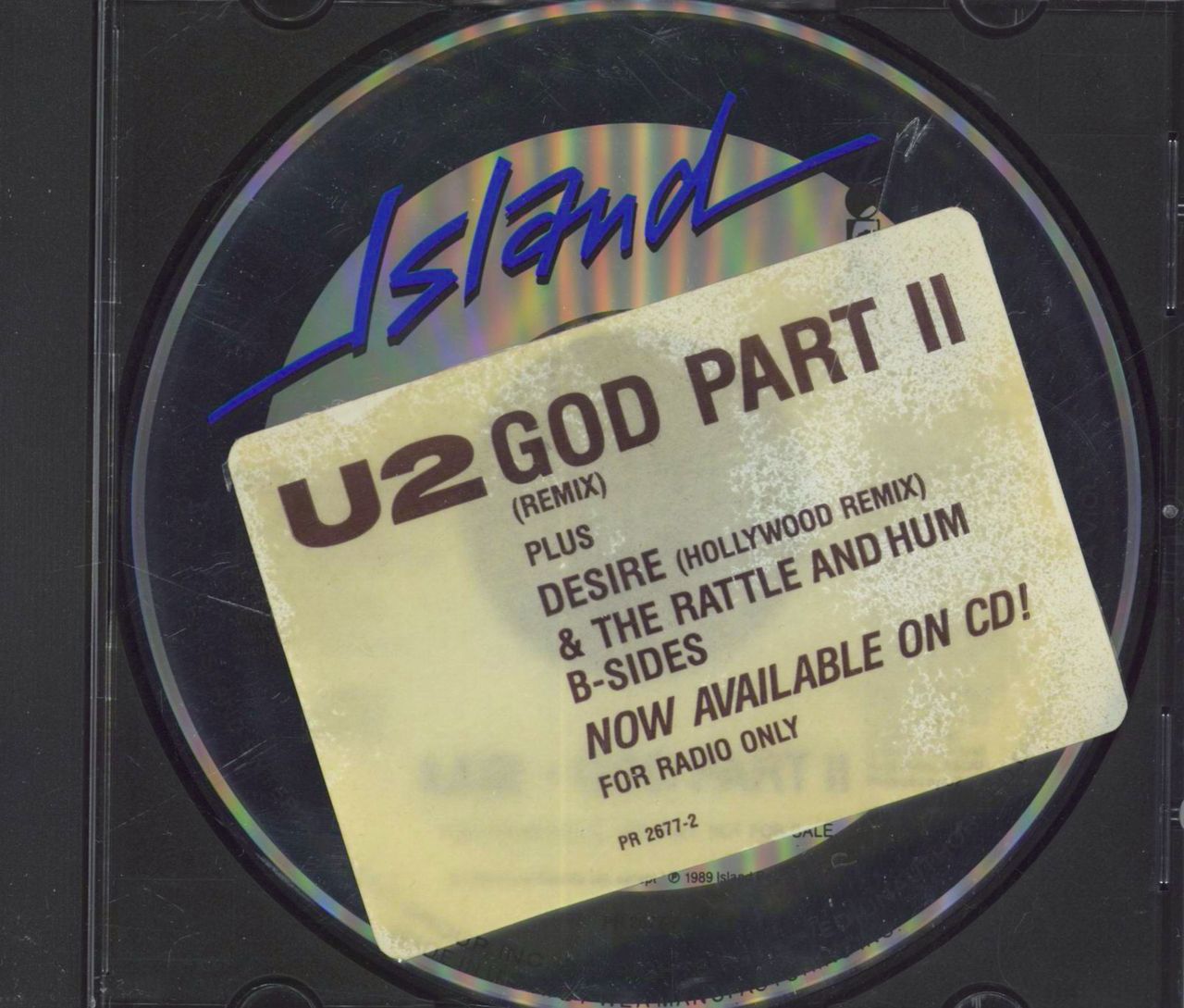 U2 God Part II (Rare 1989 US 6-track promotional CD featuring The Rattle & Hum B-Sides including Hallelujah Here She Comes [Hollywood Remix], Desire [Hollywood Remix], A Room At The Heartbreak Hotel, Love Rescue Me Live & Dancing Barefoot. Although not sealed, this example remains in a really nice condition and includes the original hype sticker from the shrink PR2677-2)