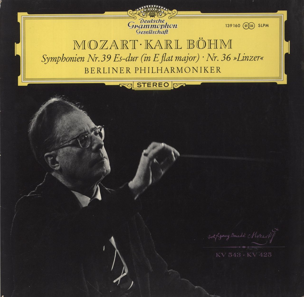 BERLINER PHILHARMONIKER conducted by KARL BÖHM Symphonien Nr. 39 Es-dur / Nr. 36 »Linzer« (1966 German small tulip label vinyl LP with 'stereo' cartouche, fully laminated picture sleeve with sleeve notes in German, English & French. The sleeveshows light wear and the vinyl looks barely played)