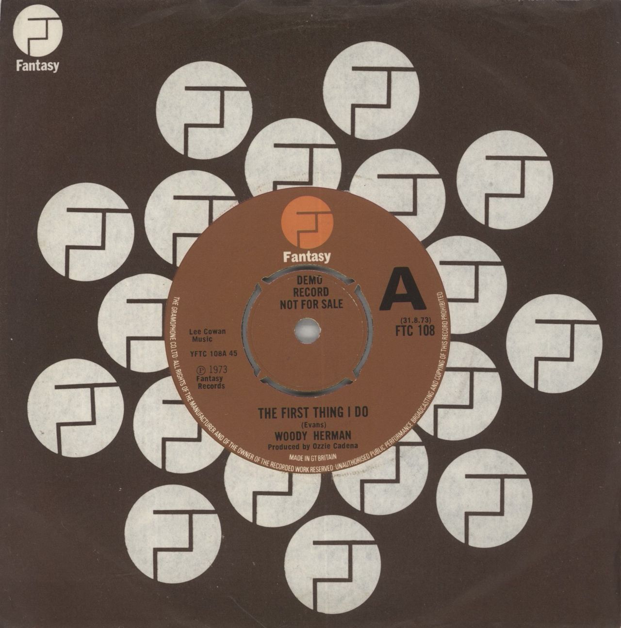 WOODY HERMAN The First Thing I Do (1973 UK 'A' label demonstration vinyl 7" for the single release with an intact four prong centre, also including Freedom Jazz Band, in a Fantasy company die-cut paper sleeve. The vinyl remains in a 'near mint' condition with minmal signs of play FTC108)