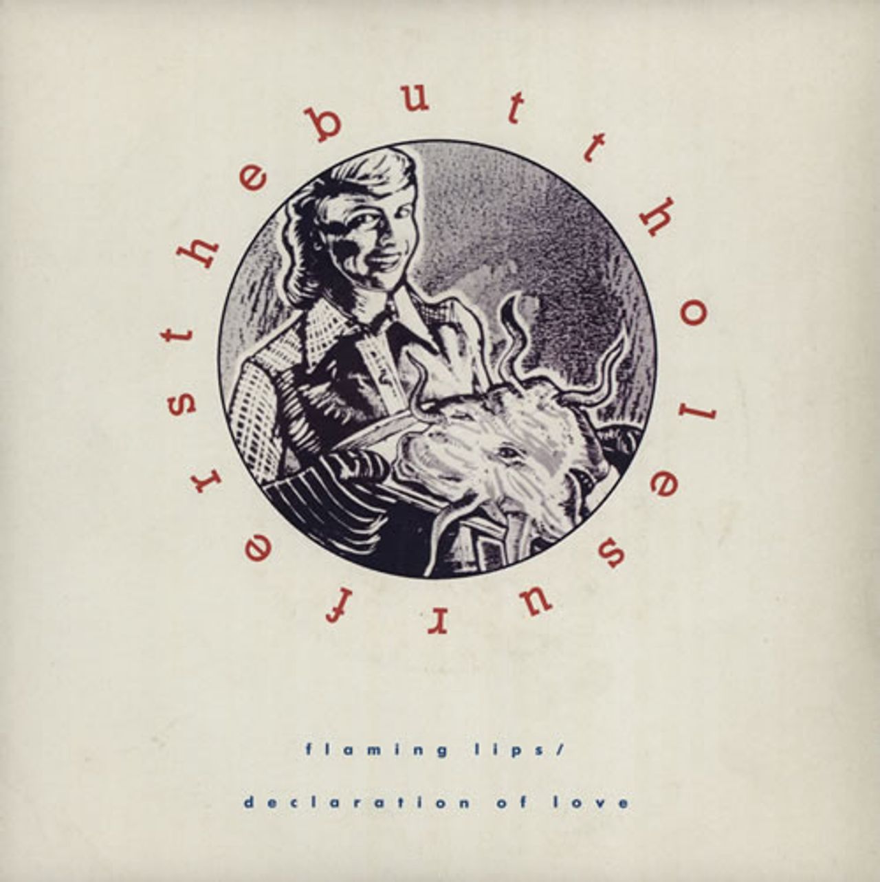 BUTTHOLE SURFERS Flaming Lips / Declaration Of Love (Rare 1986 UK 7" vinyl single, including live versions of 'Sinister Crayon' and 'The Shah Sleeps In Lee Harvey's Grave' recorded during their first ever live performance at the Lawndale ArtsCenter in Houston, Texas in March 1983, picture sleeve)