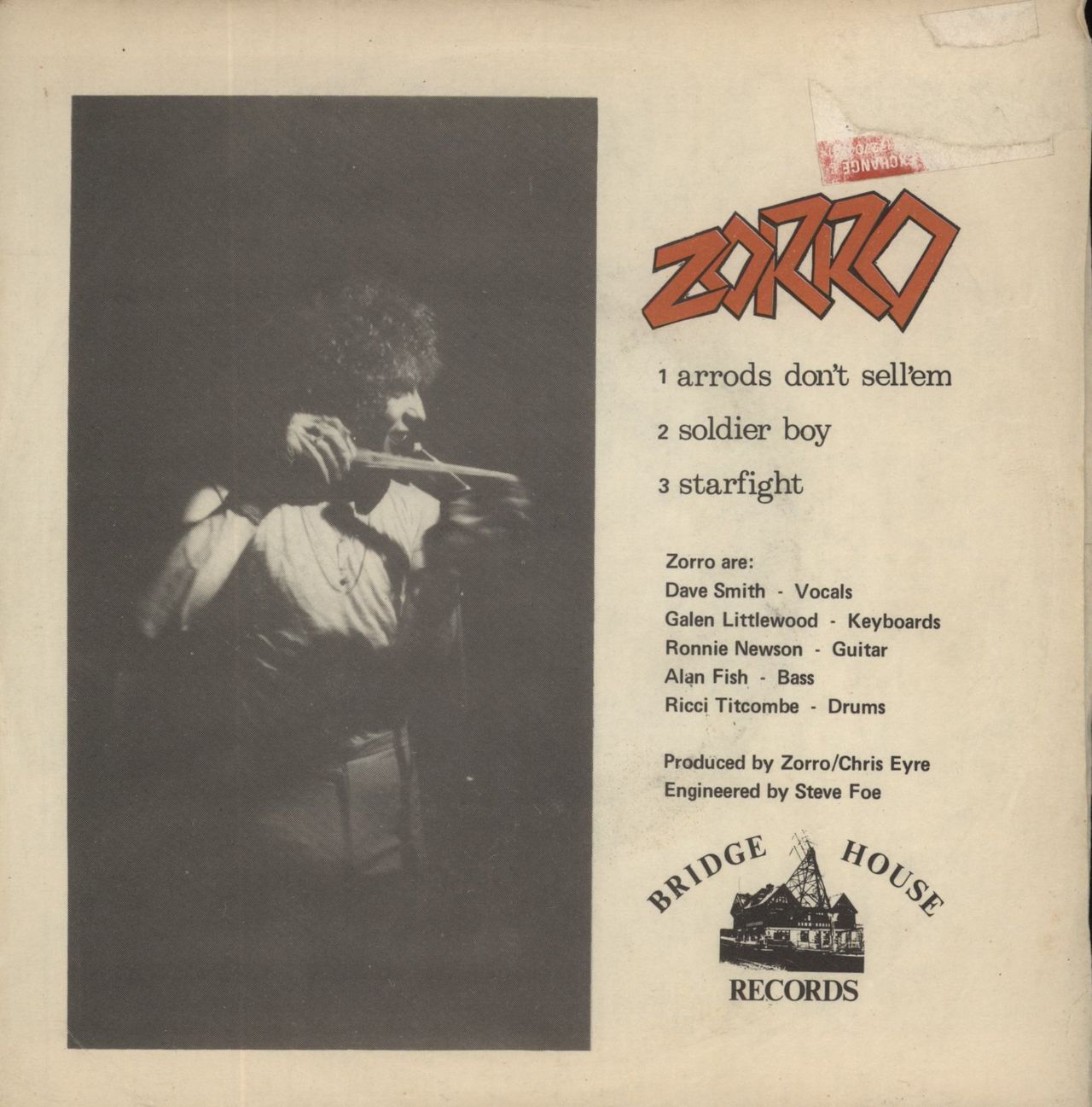 ZORRO [PUNK] Arrods Don't Sell 'em (Scarce 1979 UK 3-track 7" vinyl EP. The one and only EP from UK punk/metal band. Paper picture sleeve. The sleeve has an area of paper loss to the front and some remnants of a price sticker. However the vinyl reveals little of its age with minimal signs of play BHEP1)