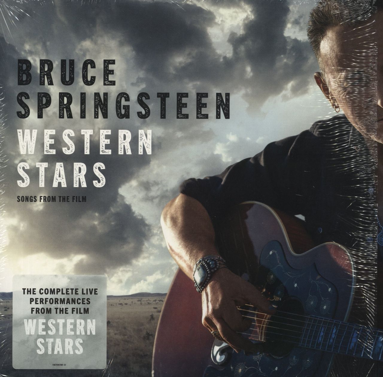 BRUCE SPRINGSTEEN Western Stars: Songs From The Film (2019 US limited edition 14-track double LP pressed on Clear Vinyl with Blue & White Marbling featuring the soundtrack to the film which saw Bruce accompanied by his backing band and an orchestra performing the music from the album to a live audience. These live performances were filmed during two nights in April 2019 in a historic barn on the artist's property, the outdoor sequences were filmed at Joshua Tree National Park. The gatefold picture sleeve comes with the picture / lyric inners remains in the open shrink with hype-sticker. The sleeve shows just a little wear to the bottom righthand corner. The two vinyl discs are Near Mint)