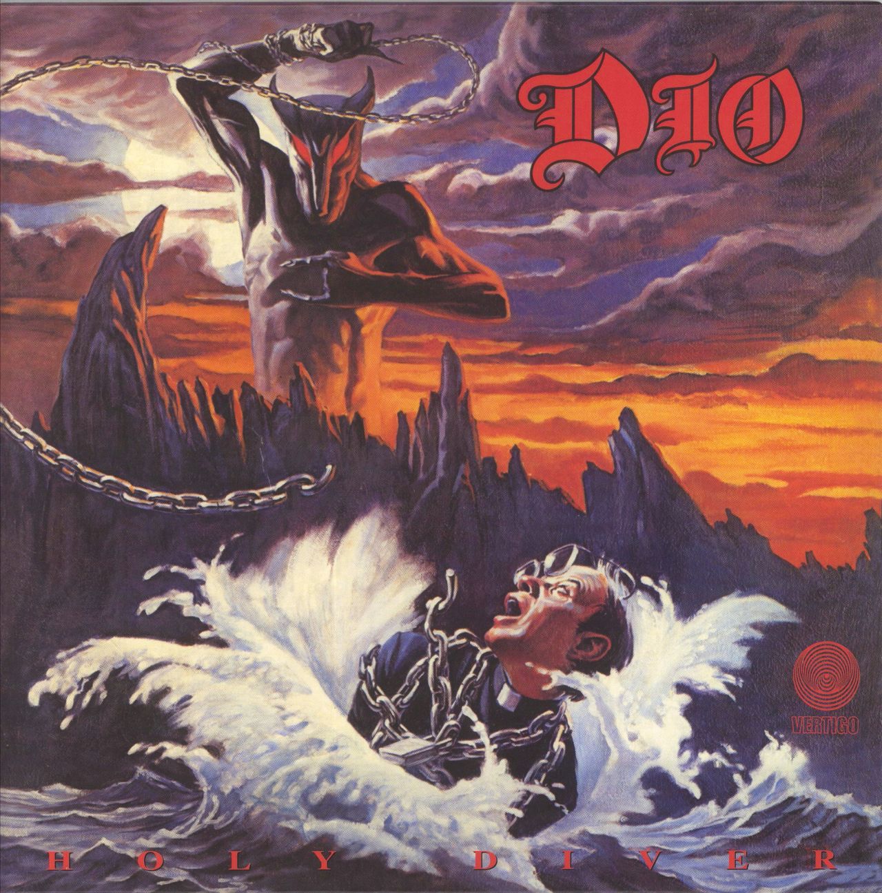 DIO Holy Diver (2021 UK/EU 9-track remastered LP - the iconic 1983 debut album that launched Dio's legendary solo career. After fronting Rainbow and delivering two hit albums with Black Sabbath, Ronnie James Dio struck out on his own, assembling a powerhouse lineup featuring Jimmy Bain (bass), Vinny Appice (drums), Vivian Campbell (guitar), and Claude Schnell (keys). The result? Holy Diver - a full-tilt metal masterpiece! From the soaring MTV hit "Rainbow In The Dark" to the crushing title track "Holy Diver", every song delivers Dio's signature blend of epic storytelling, powerful vocals, and razor-sharp riffing. Other highlights include "Stand Up And Shout", "Invisible", and "Don't Talk To Strangers." This 2021 remastered reissue is pressed on heavyweight black vinyl, housed in a single pocket sleeve with printed inner, factory sealed. Essential)