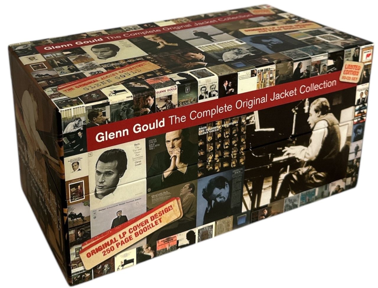 GLENN GOULD The Complete Original Jacket Collection (2007 UK/EU limited edition 80-CD box set. Featuring the complete works of Glenn Gould, including the complete recording sessions of Bach’s Goldberg Variations, housed in facsmilie CD sleeves, replicating the sleeves in which the LPs used to be in. Also includes a 250-page hard-cover book, featuring 45 sensational, newly discovered photos from the recording sessions and lots more, housed in a heavy card picturre box, with tracklisting insert. The box shows a split on the opening edge and scuffing to the bottom; remaining Excellent otherwise. With some of the CD discs, they show light signs of play )