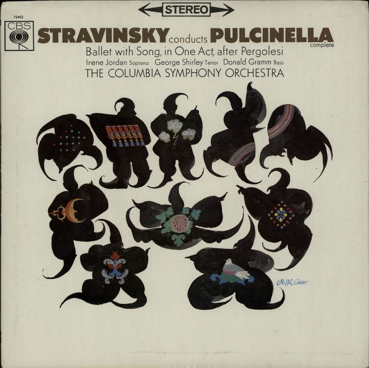 IGOR STRAVINSKY conducts THE COLUMBIA SYMPHONY ORCHESTRA Stravinsky Conducts Pulcinella (1966 UK stereo LP, front laminated flipback picture sleeve with libretto sheet for the ballet with song in one act. The sleeve shows minimal wear & the vinyl looks barely touched or played SBRG72452)