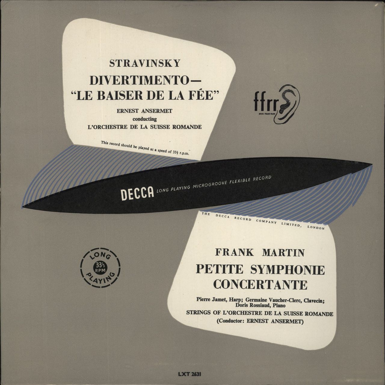 FRANK MARTIN & the PETITE SYMPHONIE CONCERTANTE Stravinsky: Divertimento - "Le Baiser De La Fée" / Petite Symphonie Concertante (1951 UK 2-part MONO vinyl LP on the orange & gold Decca label, matt flipback picture sleeve. The sleeve shows minimal wear and the vinyl is Excellent & appears barely played LXT2631)