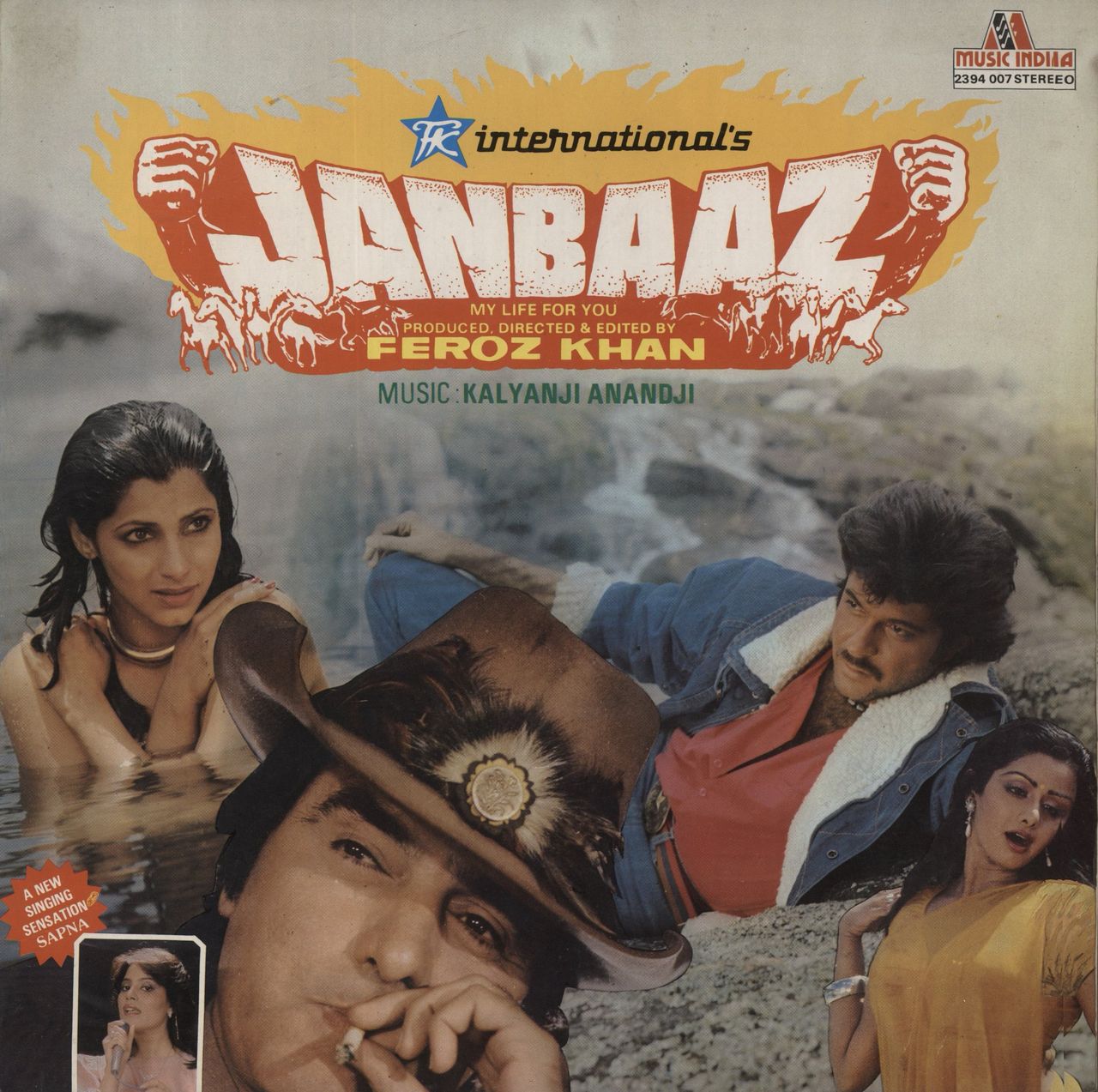 ORIGINAL SOUNDTRACK Janbaaz (My Life For You) (1986 Indian 9-track vinyl LP, Kalyanji-Anadji's movie score featuring performances by Kishore Kumar, Sapna, Marian Stockley and Mahesh Gadhavi fully laminated picture sleeve. The sleeve shows light wear and the vinyl is EX/VG+ with just a few light signs of play)
