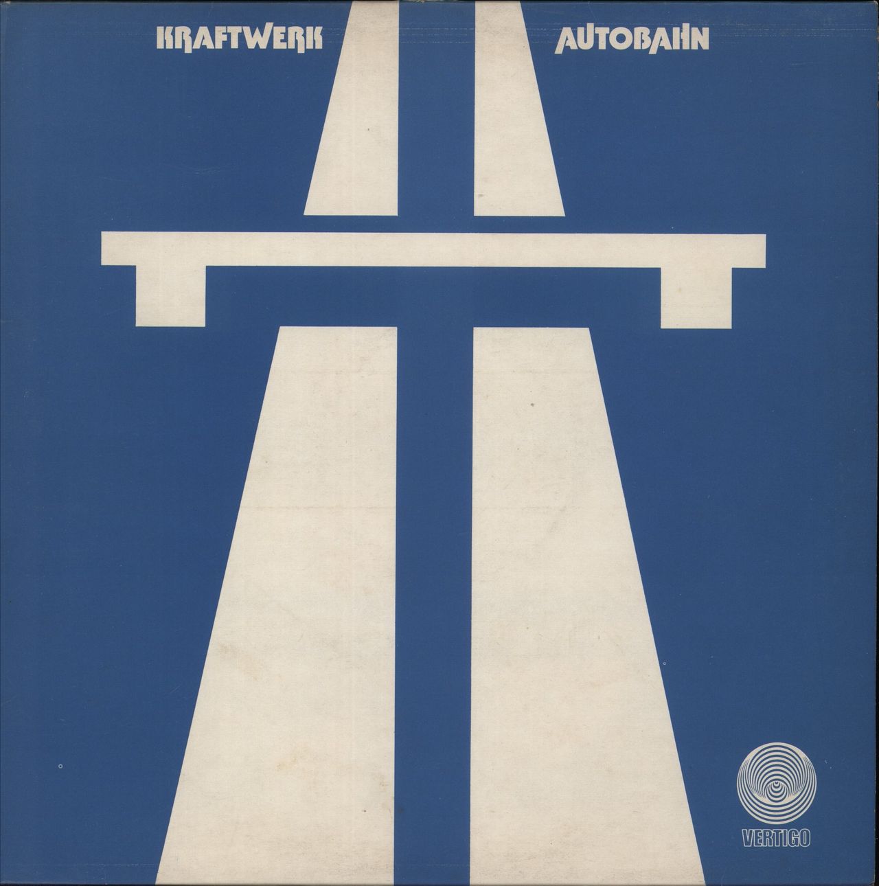 KRAFTWERK Autobahn (Classic 1974 UK 5-track vinyl LP on the Vertigo 'spaceship' label, housed in the second edition matte picture sleeve with non-embossed design. The sleeve shows minimal wear and the vinyl, while appearing in excellentcondition provides a little surface noise upon playtesting but remains in otherwise VG condition!)