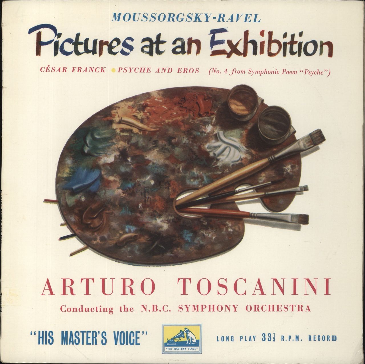 ARTURO TOSCANINI Mussorgsky: Pictures At An Exhibition / Franck: Psyche And Eros (1954 UK 2-track mono vinyl LP, fully laminated picture sleeve with 'scalloped' flipbacks. The sleeve shows just light wear and despite a couple of annotations tothe labels, the vinyl appears barely played ALP1218)