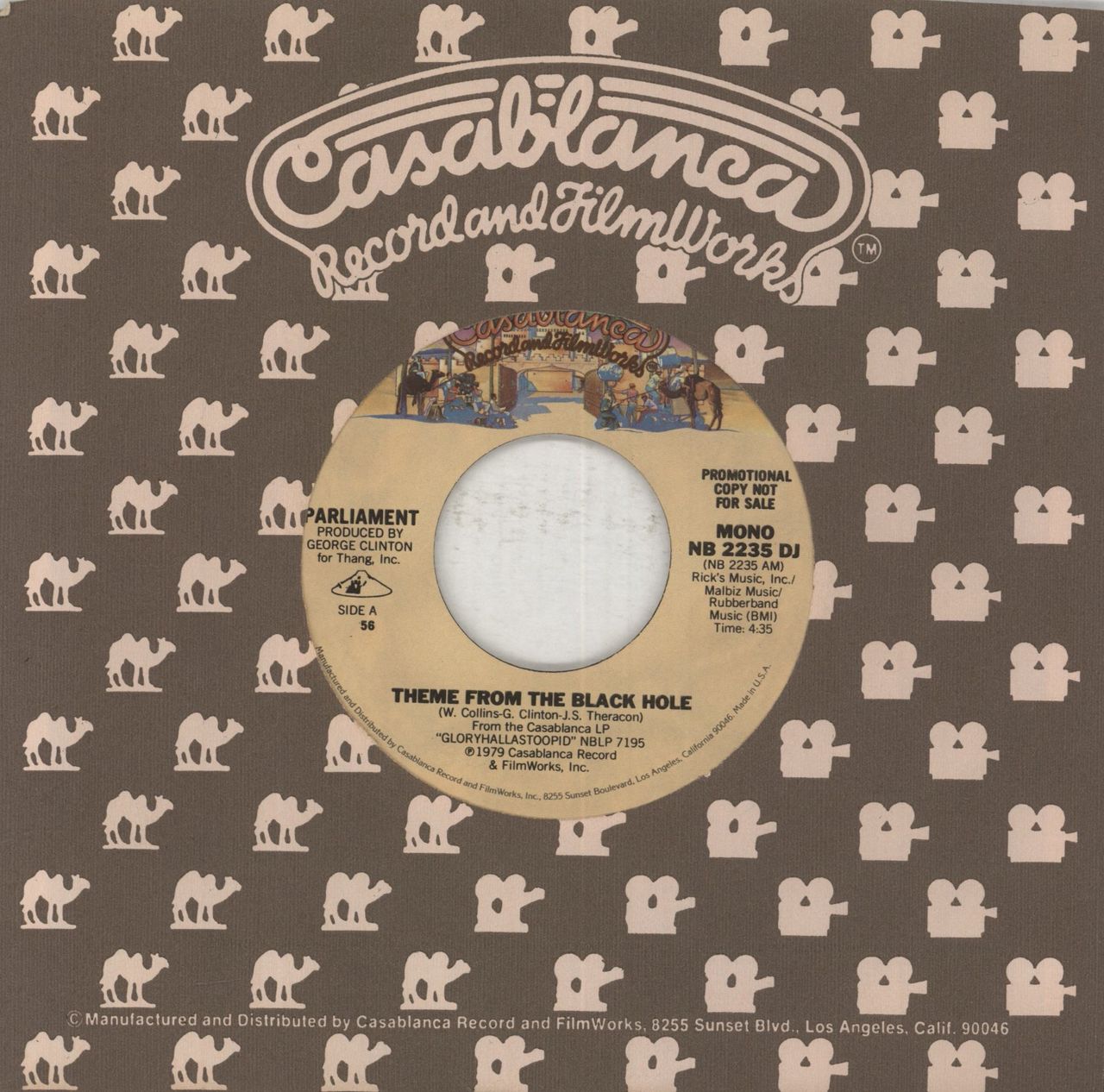 PARLIAMENT Theme From The Black Hole (1979 US 7" DJ promo vinyl single with the title track on both sides, housed in a Casablanca company die-cut sleeve)