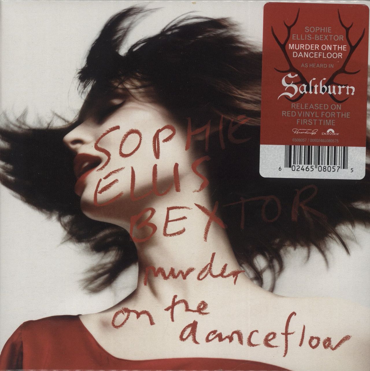 SOPHIE ELLIS BEXTOR Murder On The Dancefloor (2024 UK/EU limited edition 2-track 7" single released exclusively to celebrate it's use in 'Saltburn', pressed on Red Vinyl, also including the Jewels & Stone Mix Edit. Housed in a wide picture sleeve with barcoded hype sticker on the front and glossy inner sleeve)