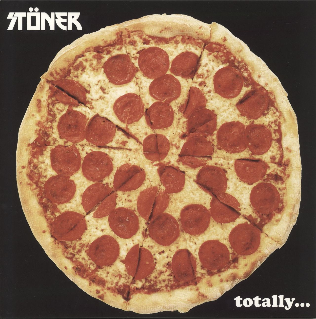 STÖNER Totally... (2022 Italian limited edition 7-track vinyl LP, the second album from the American stoner rock supergroup featuring members of Kyuss, Queens Of The Stone Age, Monster Magnet and more, housed in a single pocket picture sleevefeaturing a full pepperoni pizza on the front cover with artist and title text. The sleeve has minimal wear and vinyl remains in a 'near mint' condition)