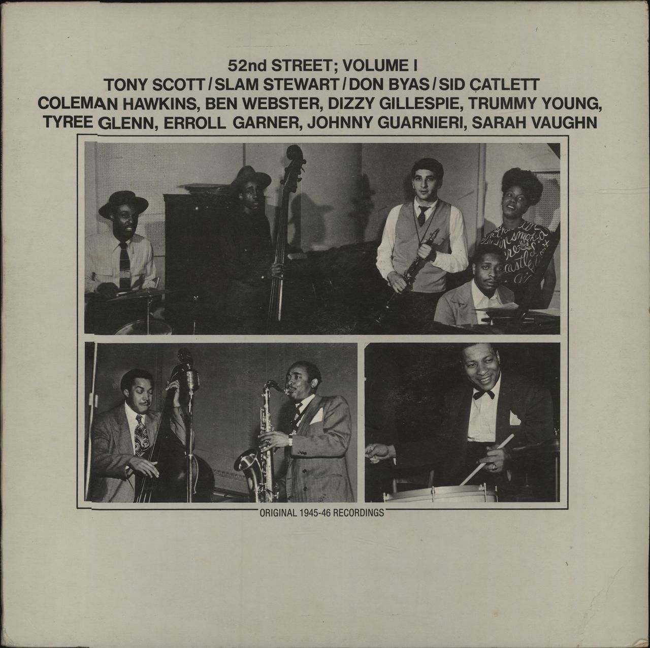 VARIOUS 52nd Street; Volume 1 (1973 UK 15-track vinyl LP compilation, includes tracks by Tony Scott, Slam Stewart, Don Byas and Sid Catlett, recorded in 1945 & 1946, picture sleeve. The sleeve shows light wear with areas of discolouration to the reverse, whilst the vinyl appears barely played)