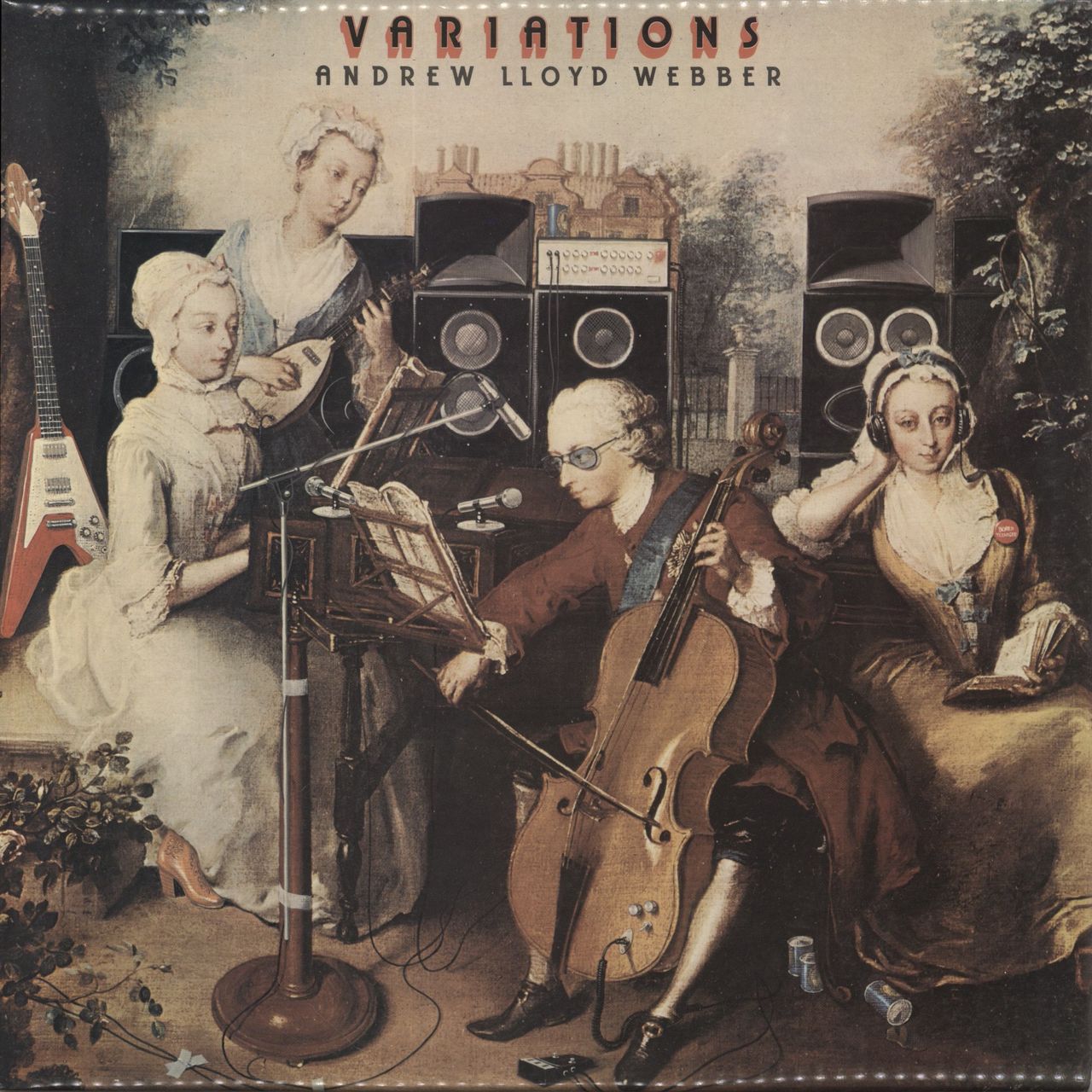 ANDREW LLOYD WEBBER Variations (1978 UK 15-track LP featuring essentially Colosseum II as the backing band: Gary Moore, Don Airey, Jon Hiseman & John Mole, with saxes & flute from Barbara Thompson & additional keyboards by Rod Argent, with Julian Lloyd Webber on Cello, Phil Collins & Herbie Flowers as an alternate rhythm section, fully laminated gold/promo stamped picture sleeve with illustrated credits inner. The sleeve shows a little light shelfwear with a split to the inner, while the vinyl remains in excellent condition with few signs of play MCF2824)