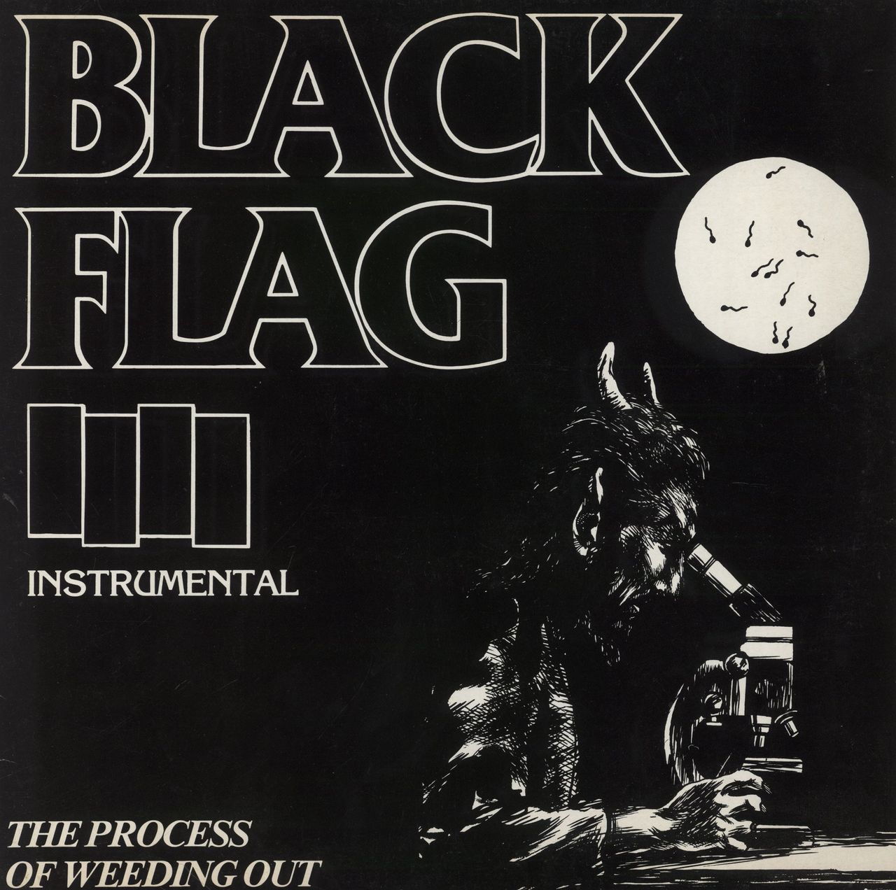 BLACK FLAG The Process Of Weeding Out (UK 1985 4-track 12" vinyl EP consisting of instrumental recordings representing the peak of guitarist Greg Ginn's 12-tone musical explorations - it is this EP that brings Black Flag closest to the idea of 'punk rock as free jazz', housed in a single pocket picture sleeve with printed liner notes and credits. The sleeve reveals just a little scuffing and edgewear. The vinyl shows very little sign of play)