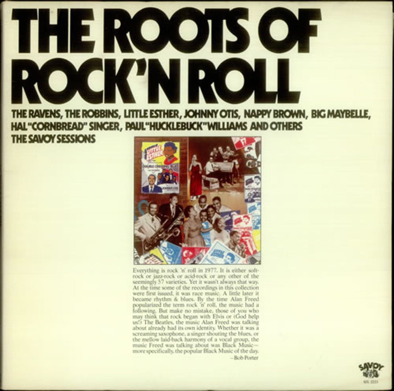 VARIOUS-50S/ROCK & ROLL The Roots Of Rock 'N Roll (1977 US 32-track double vinyl LP compilation, the first disc concentrating on early R&B sides from Wild Bill Moore, Paul Williams and Hal Singer dating back to the late forties. Vocal groups likeThe Ravens are documented plus a healthy number of female vocalists from Little Esther, Varetta Dillard to Big Maybelle. Gatefold picture sleeve with extensive album notes on the history of rock 'n roll courtesy of Bob Porter. The sleeve shows light wear with a little discolouration and the vinyl has minimal sign of play SJL2221)