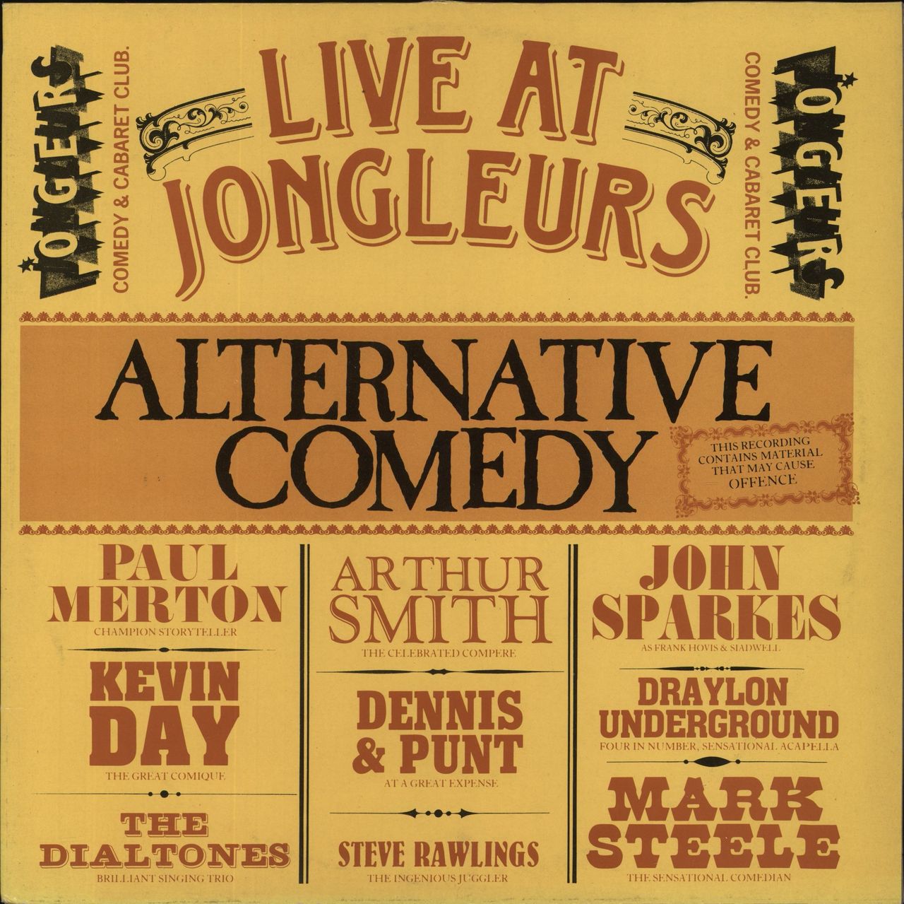 VARIOUS-COMEDY Live At Jongleurs (Alternative Comedy) (1987 UK 7-track vinyl LP, includes performances by such great Eighties comedians as Paul Merton, Arthur Smith, Dennis & Punt and John Sparkes, also includes Mark Steele, picture sleeve. The sleeve shows light wear and the vinyl is Excellent with few signs of play JONG1)
