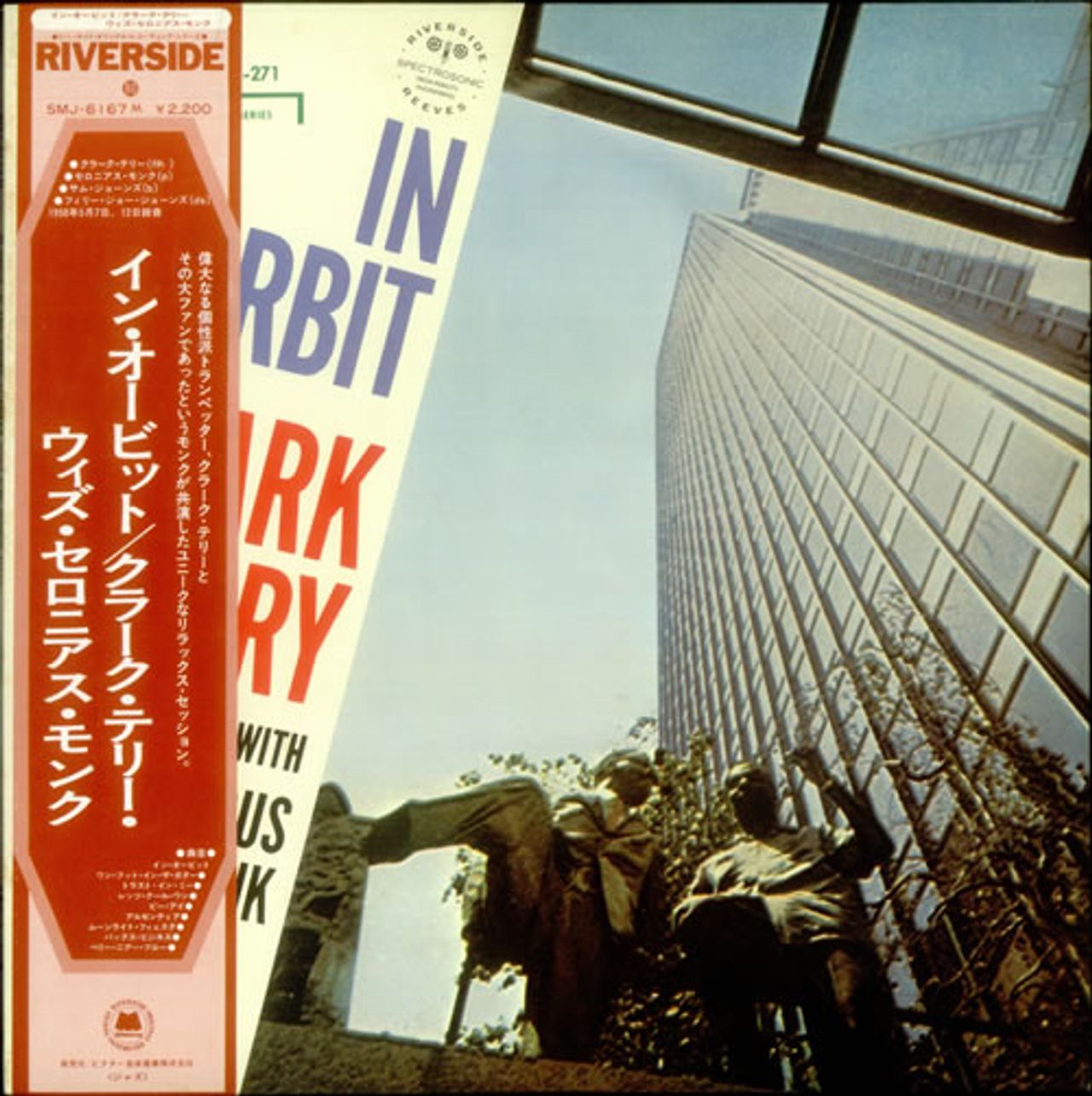 CLARK TERRY In Orbit (1977 Japanese white title label promo sample issue of the 1958 9-track LP, also featuring Thelonious Monk on Piano, Sam Jones on Bass & Philly Joe Jones on Drums, picture sleeve reproducing the original album artwork withinsert & Riverside #80 obi-strip. The sleeve shows light wear and the vinyl is Near Mint SMJ-6167)